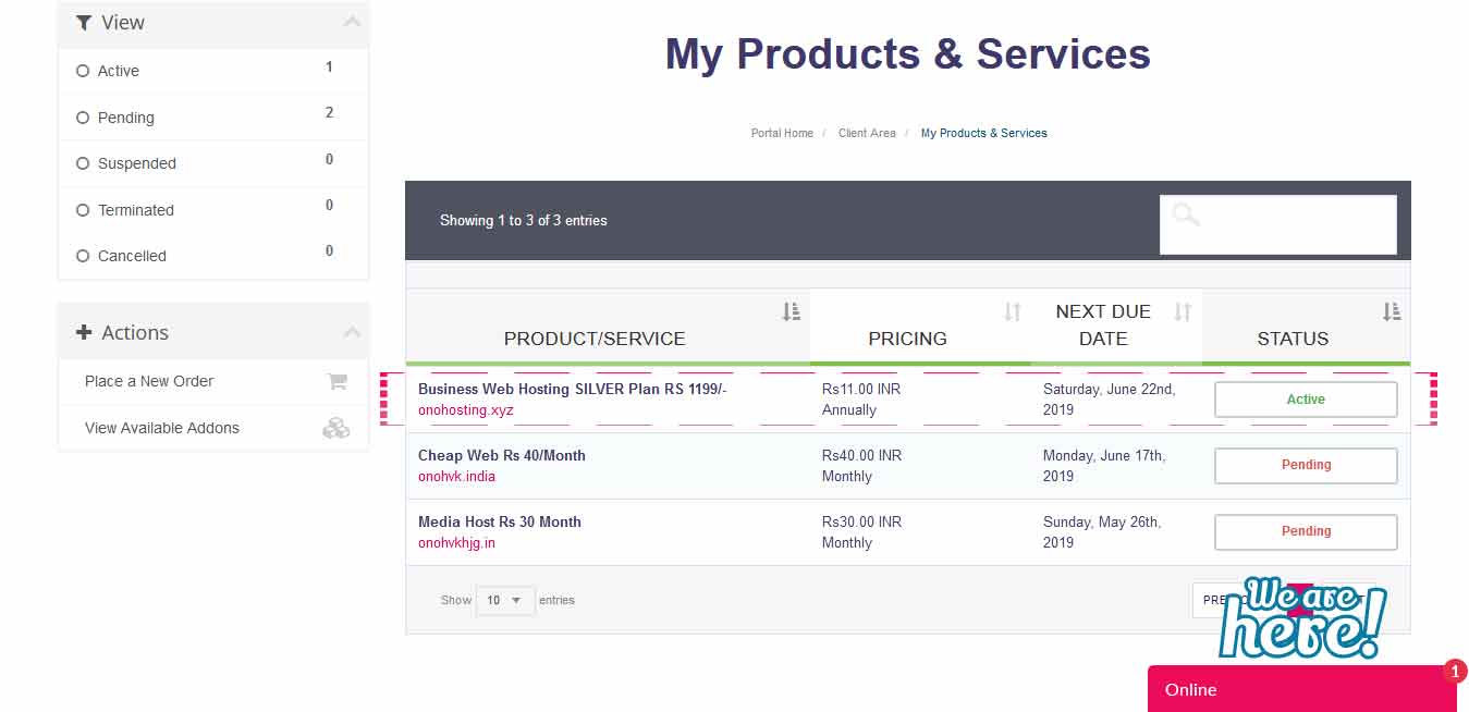 - Click On Active Services